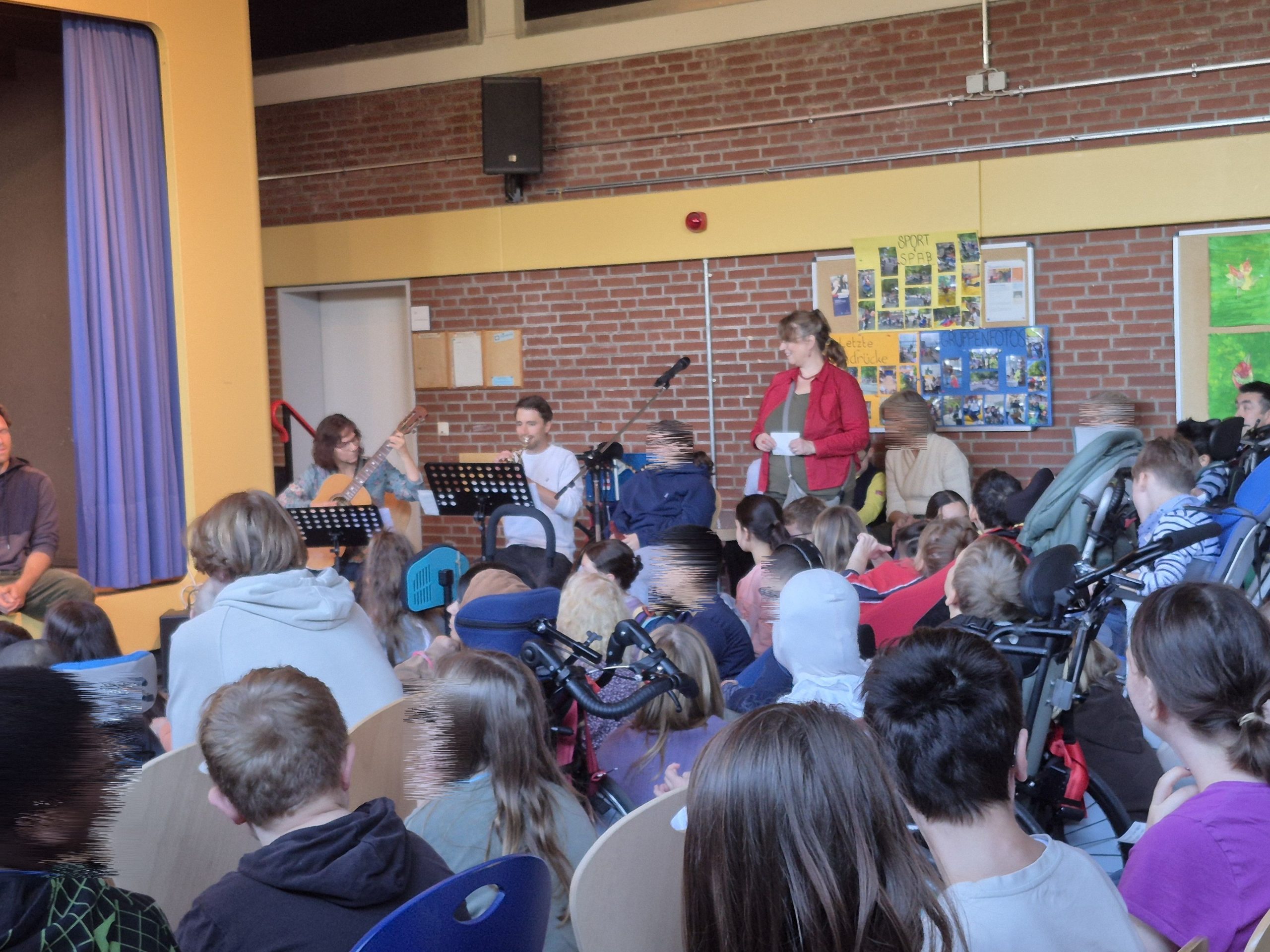 Die ganze Schule hat die Gruppe mit einem Begrüßungslied, einem kleinen Tango auf Spanisch begrüßt.