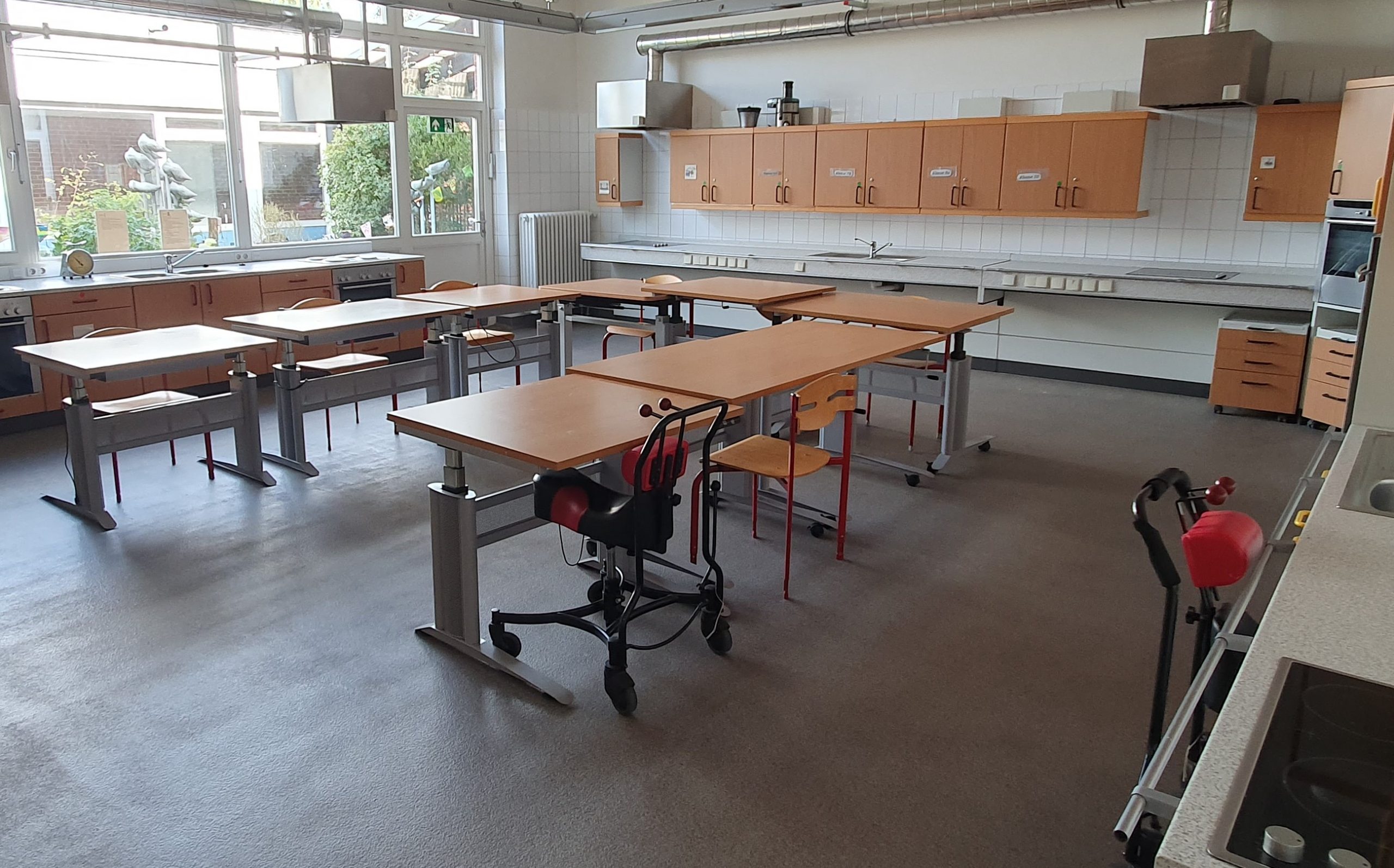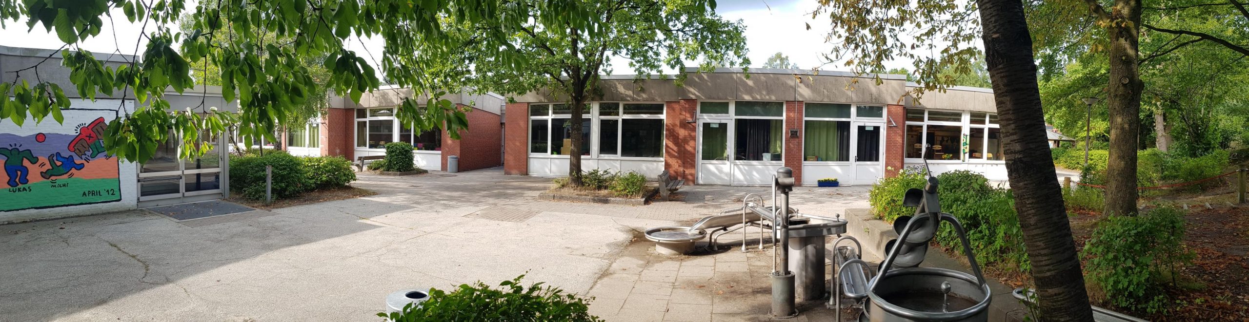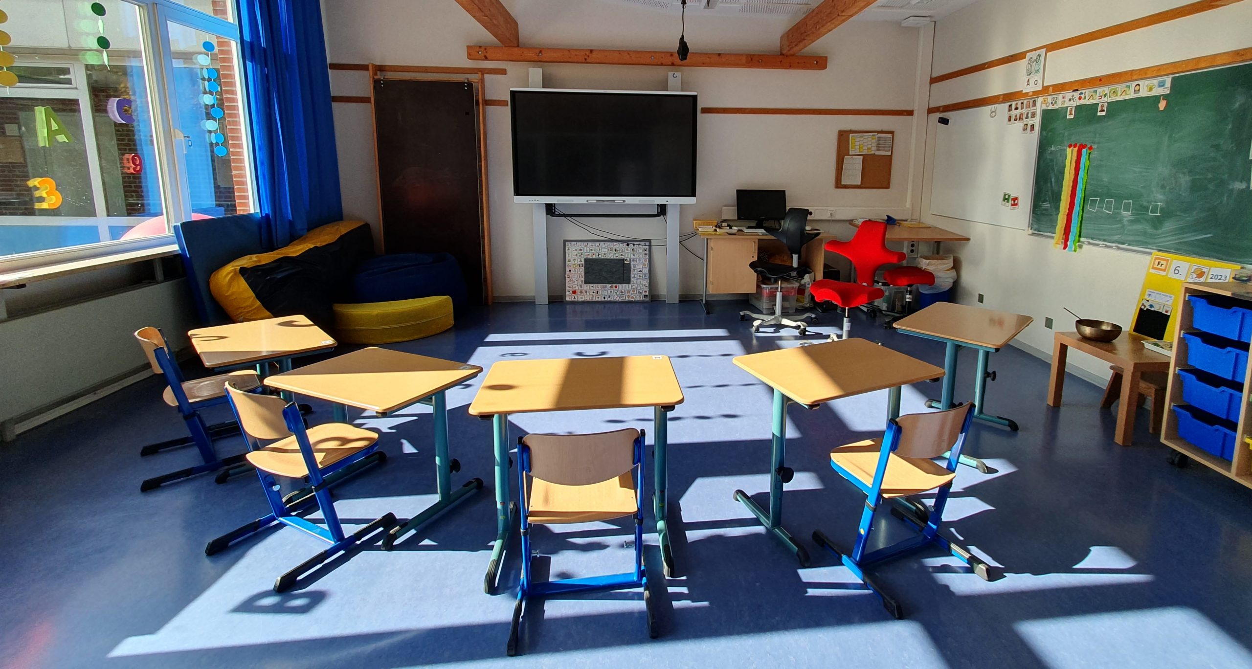 Das Schulgebäude ist komplett ebenerdig und so angelegt, dass alle Schüler*innen und Schüler sich in diesen Räumen bestmöglich bewegen können.